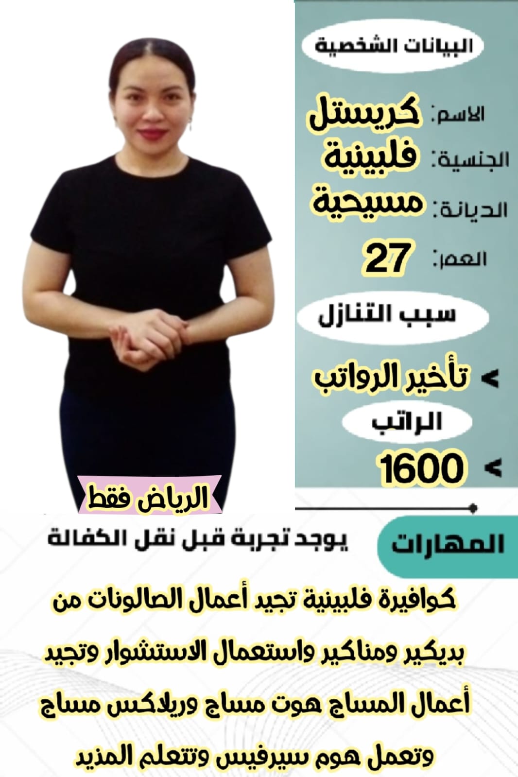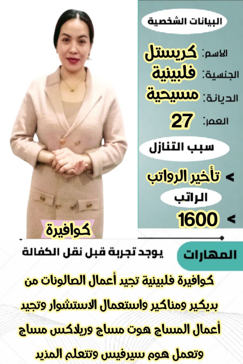 عاملة صالون فلبينية تجيد البدي كير والمنكير والمساج والصبغ الاحساء الهفوف