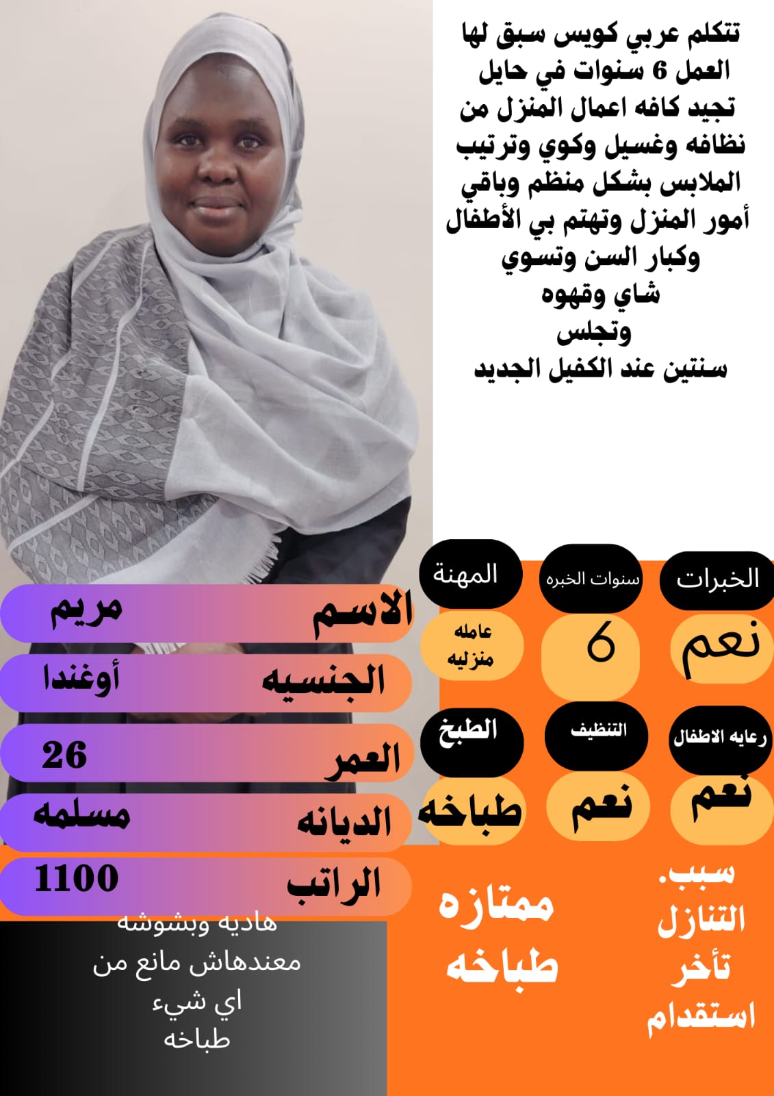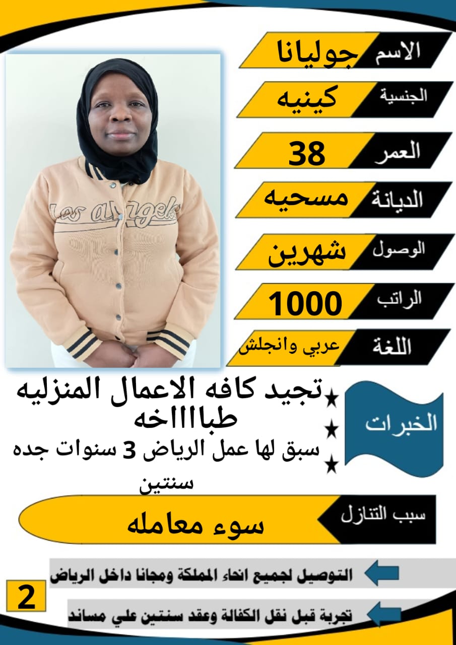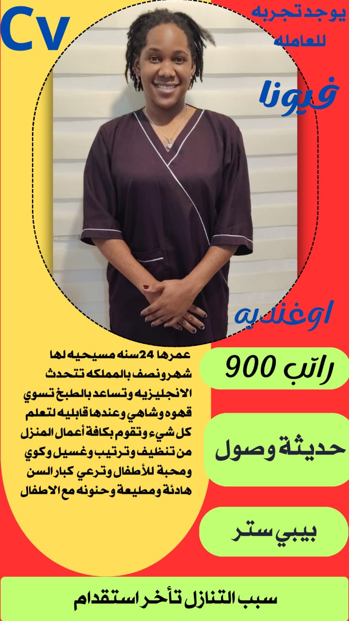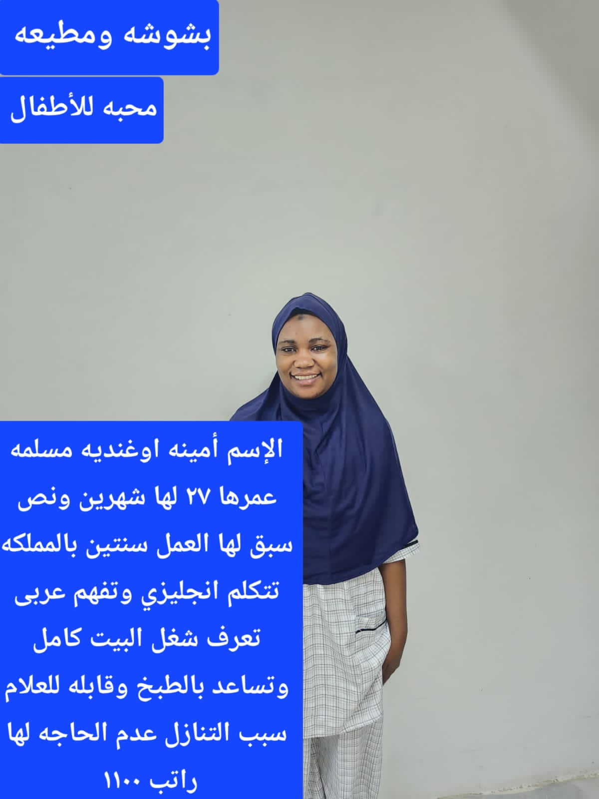 اوغندية ممتازة تجيد بعض الطبخ السعودي الراتب 1000