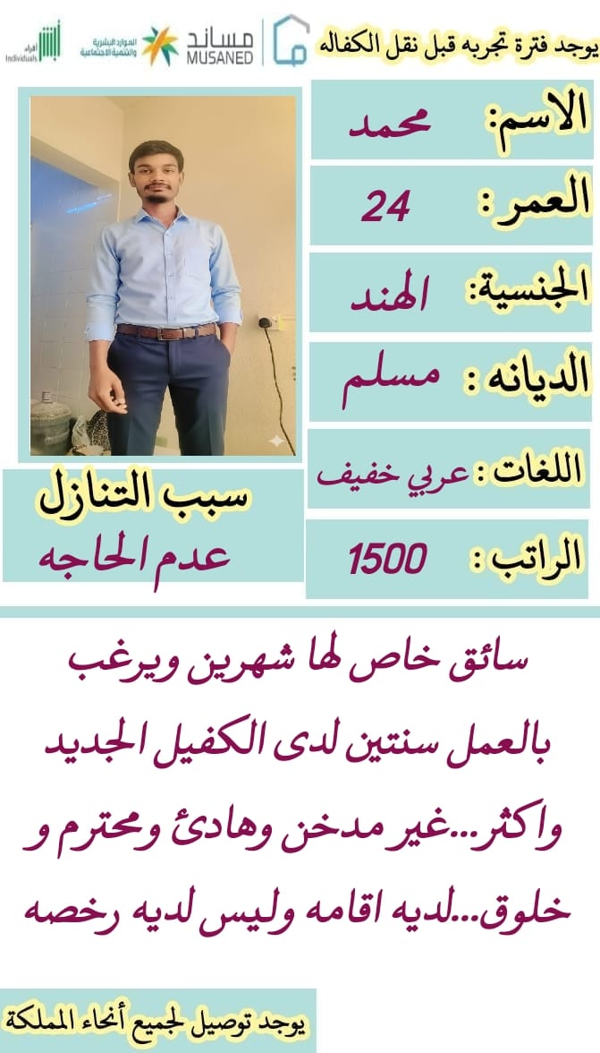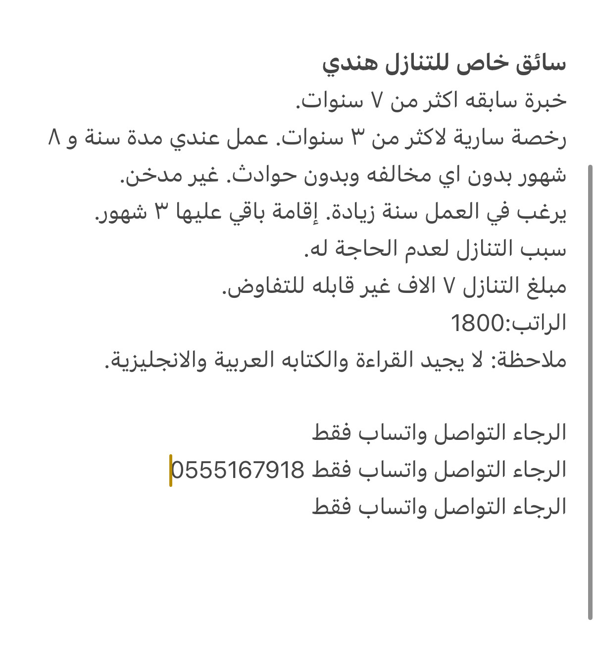 طلب سائق خاص هندي يحمل رخصه سعوديه