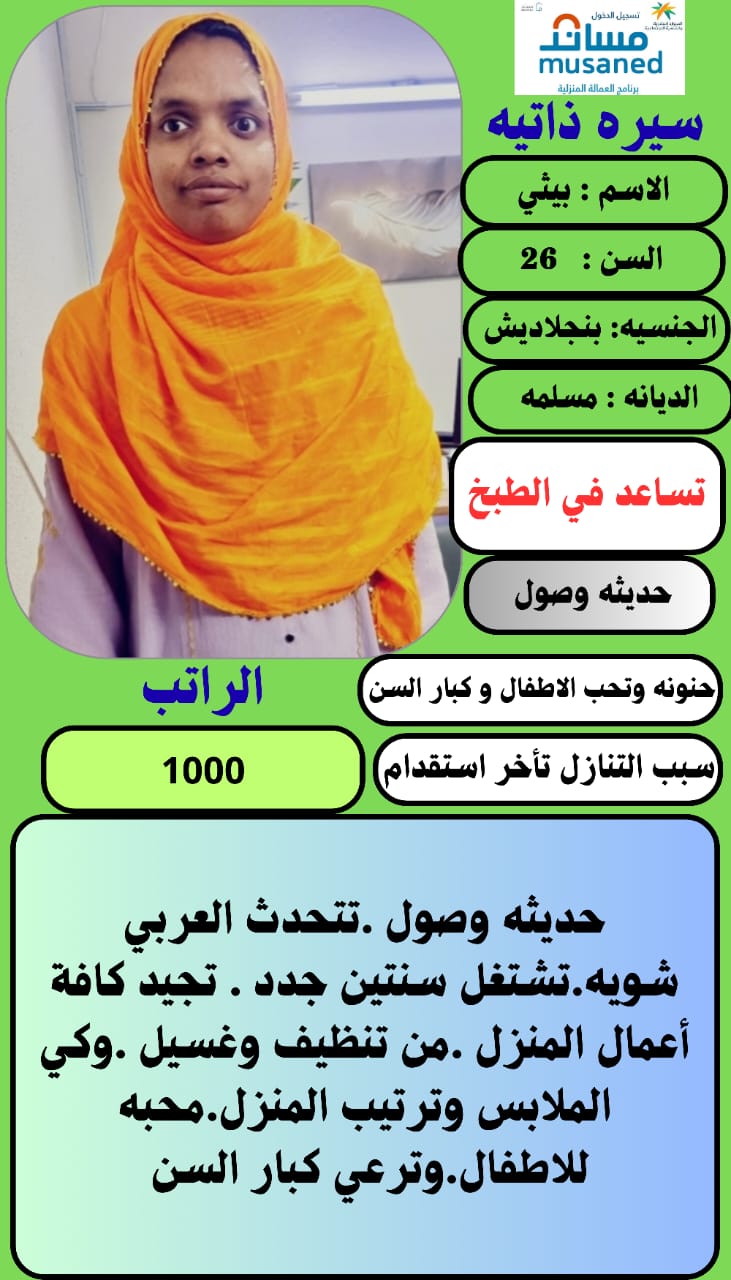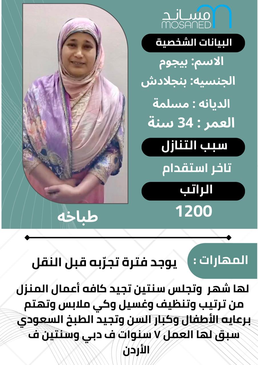 طباخه شاطره بنجلادش الراتب1200