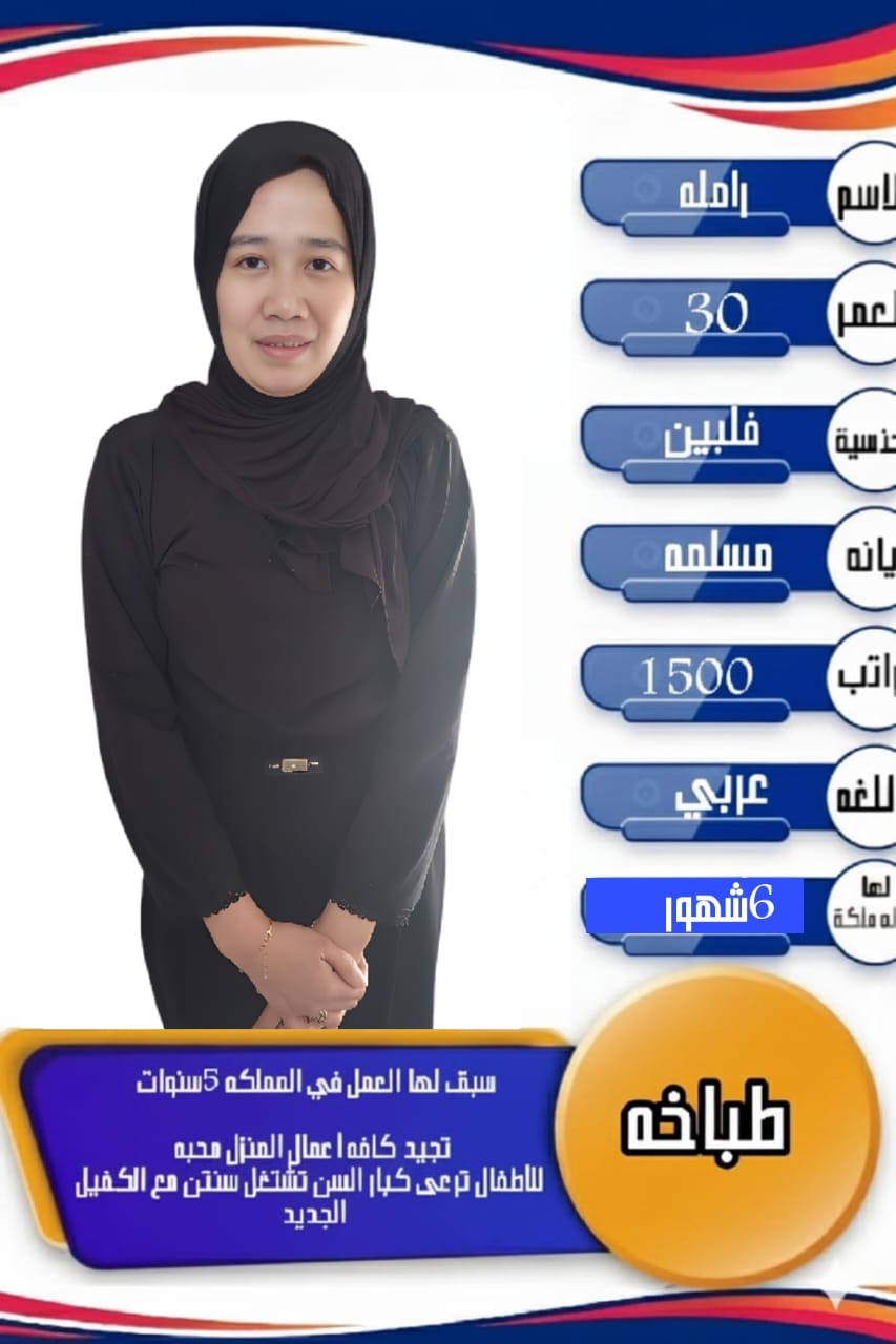 عامله فلبينيه تجيد الطبخ وكافه اعمال المنزل ورعايه الاطفال وكبار السن