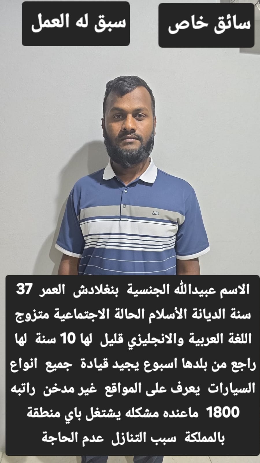 احتاج سائق وعامل منزلي هندي او بنقالي شرق اسيوي