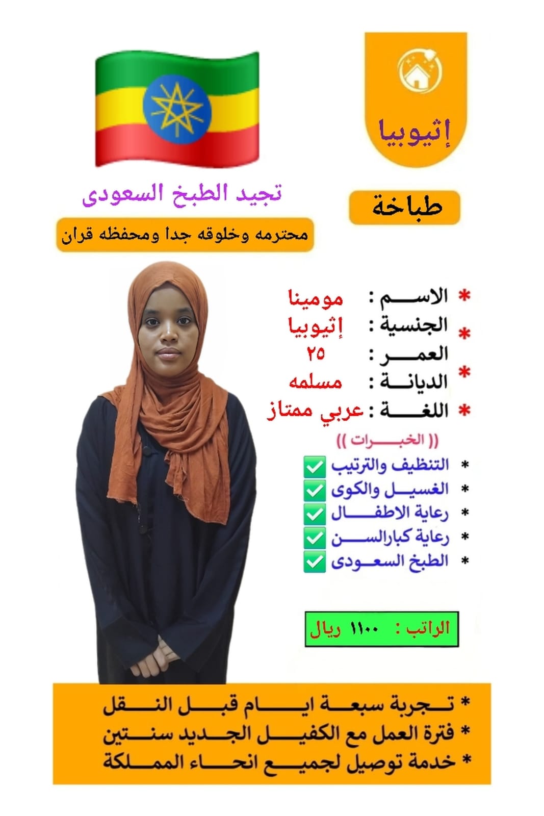 اثيوبيا طباخه ماهره تجي اللغه العربيه 0564476435