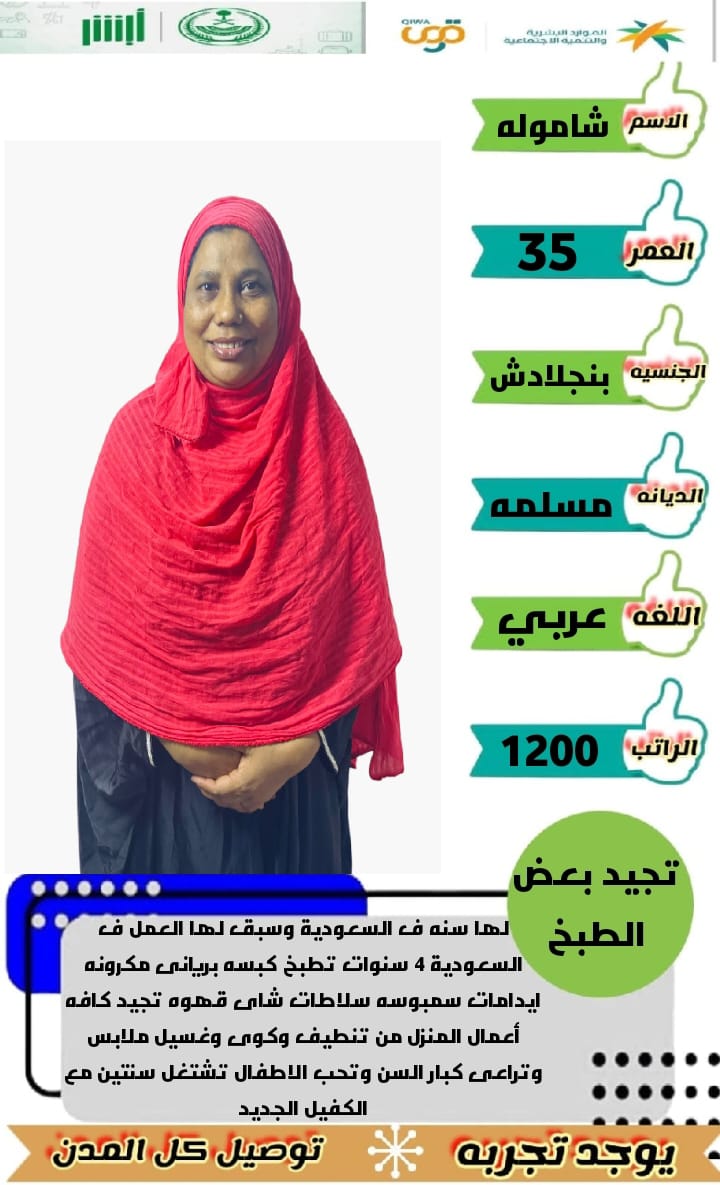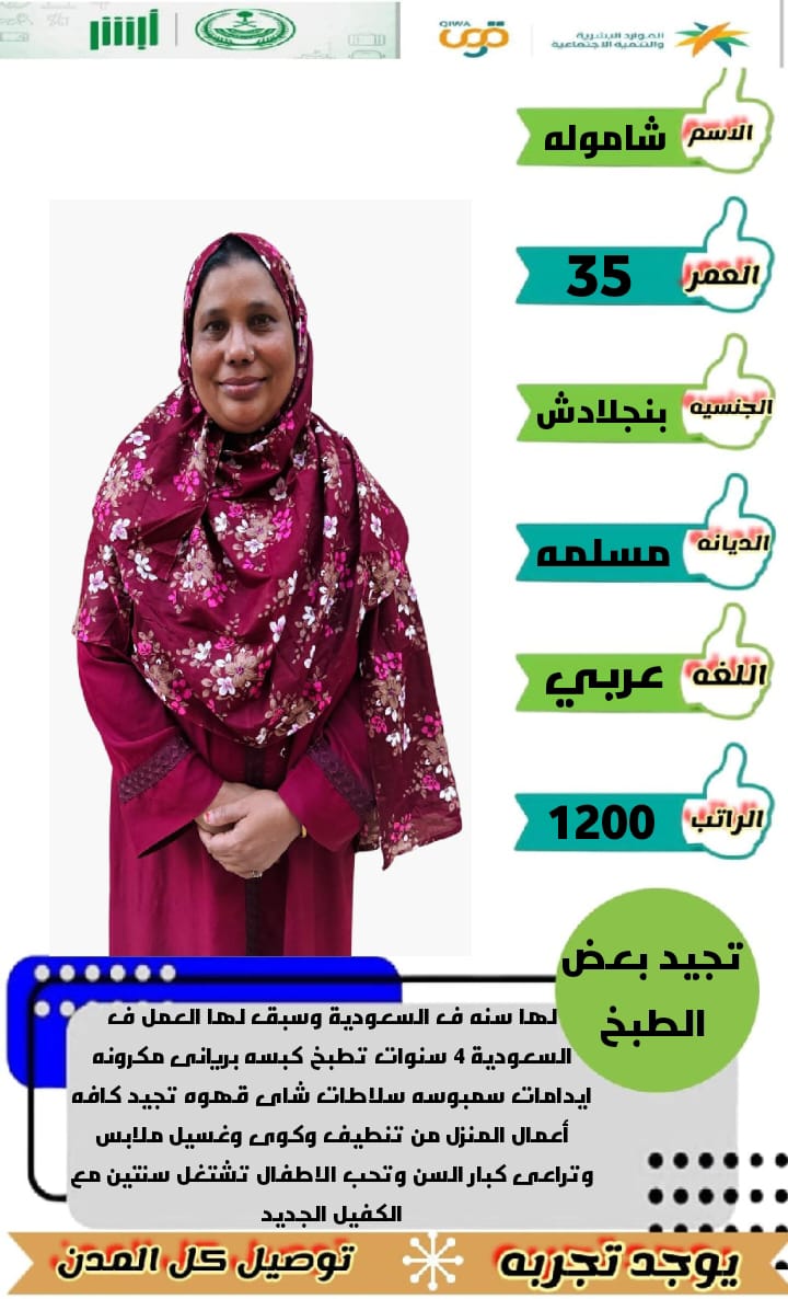 بنجلادش طباخه سبق لها العمل ٦سنوات بالمدينة المنورة ((طباخه))